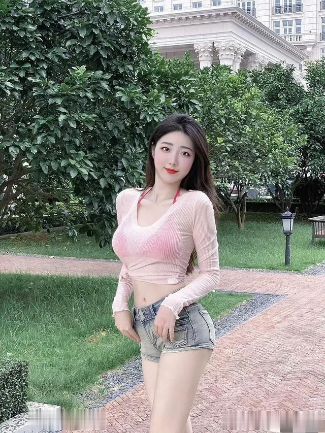 粉色的长袖针织上衣,搭配高腰牛仔短裤,整体造型清新自然,这样的搭配展现了活力和时尚感。粉色上衣增添了一丝甜美的气息,而牛仔短裤则为整体造型增添了休闲感。